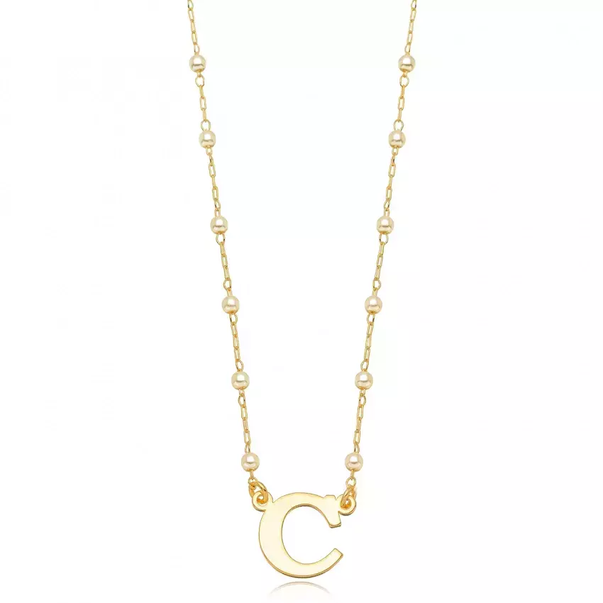 Semijoia- Colar Letra com Pérola Confeccionado em Banho de Ouro Amarelo 18K.